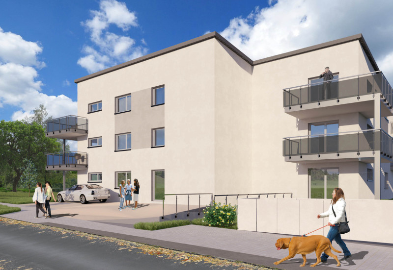 Das Gebäude wird in massiver Bauweise nach dem Effizienzhaus-Standard KfW 40 errichtet. Dreifach verglaste Fenster mit elektrischen Rollläden, ein modernes Wärmedämmverbundsystem und hochwertige Türen sorgen für Energieeffizienz, Sicherheit und Ruhe. Großzügige Balkone und Terrassen erweitern den Wohnraum und laden zum Entspannen im Freien ein.