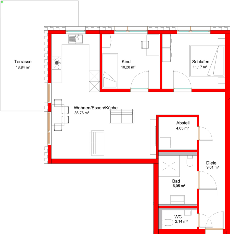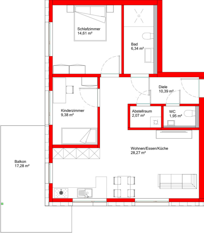 Das Mehrfamilienhaus wird mit insgesamt 23 Stellplätzen ausgestattet, entsprechend der behördlichen Auflage. Beim Kauf einer Wohnung mit bis zu 70 m² Wohnfläche ist der Erwerb eines Stellplatzes, bei Wohnungen über 70 m² der Erwerb von zwei Stellplätzen verpflichtend. Alle Maßangaben sind ca.-Maße und unverbindlich.